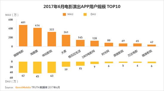 7月12日,第三方数据公司Quest Mobile发布移动互联网2017年Q2夏季报告。数据显示,电影在线票务行业的App中,淘票票的日活跃用户数量排名行业第一,在今年6月更是达到45万,位居行业第一。